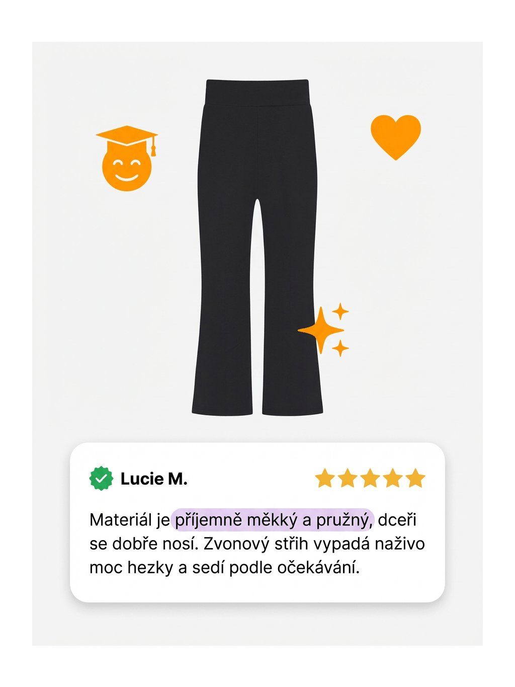 - Složení: 80 % polyester, 20 % elastan