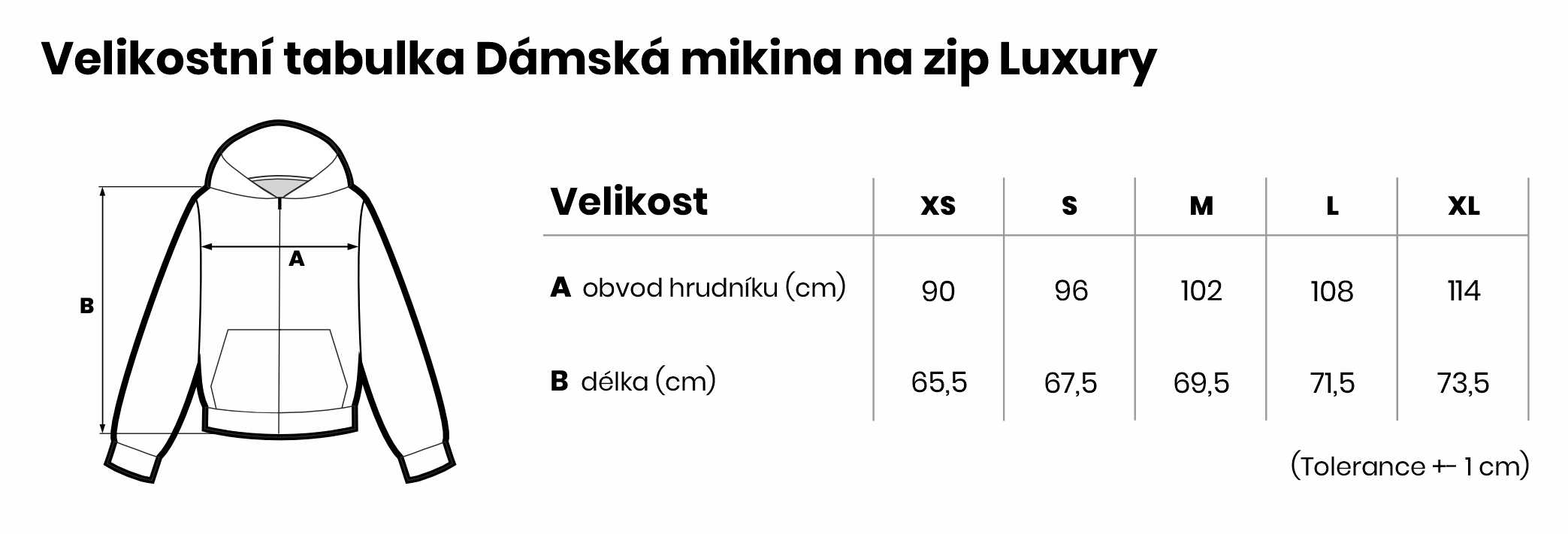 Velikostní tabulka Dámská mikina na zip Luxury