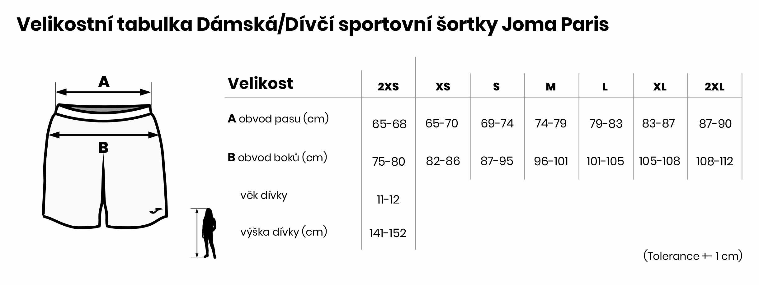 Velikostní tabulka Dámské/Dívčí sportovní šortky Joma Paris