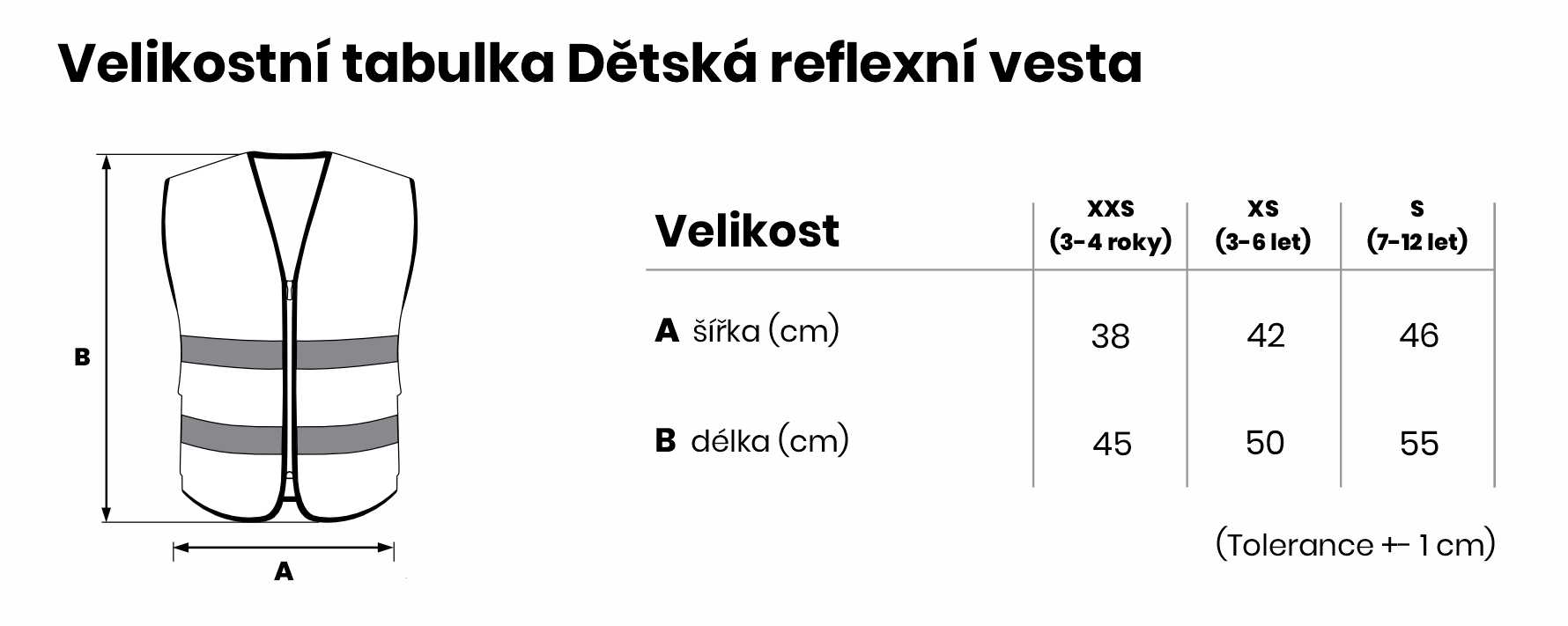 Velikostní tabulka Dětská reflexní vesta