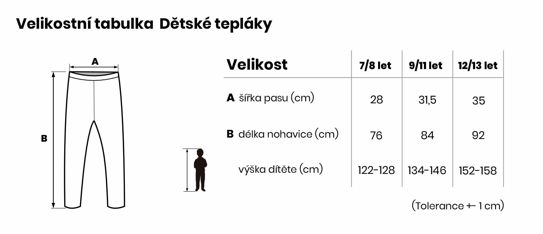 Velikostní tabulka Dětské tepláky