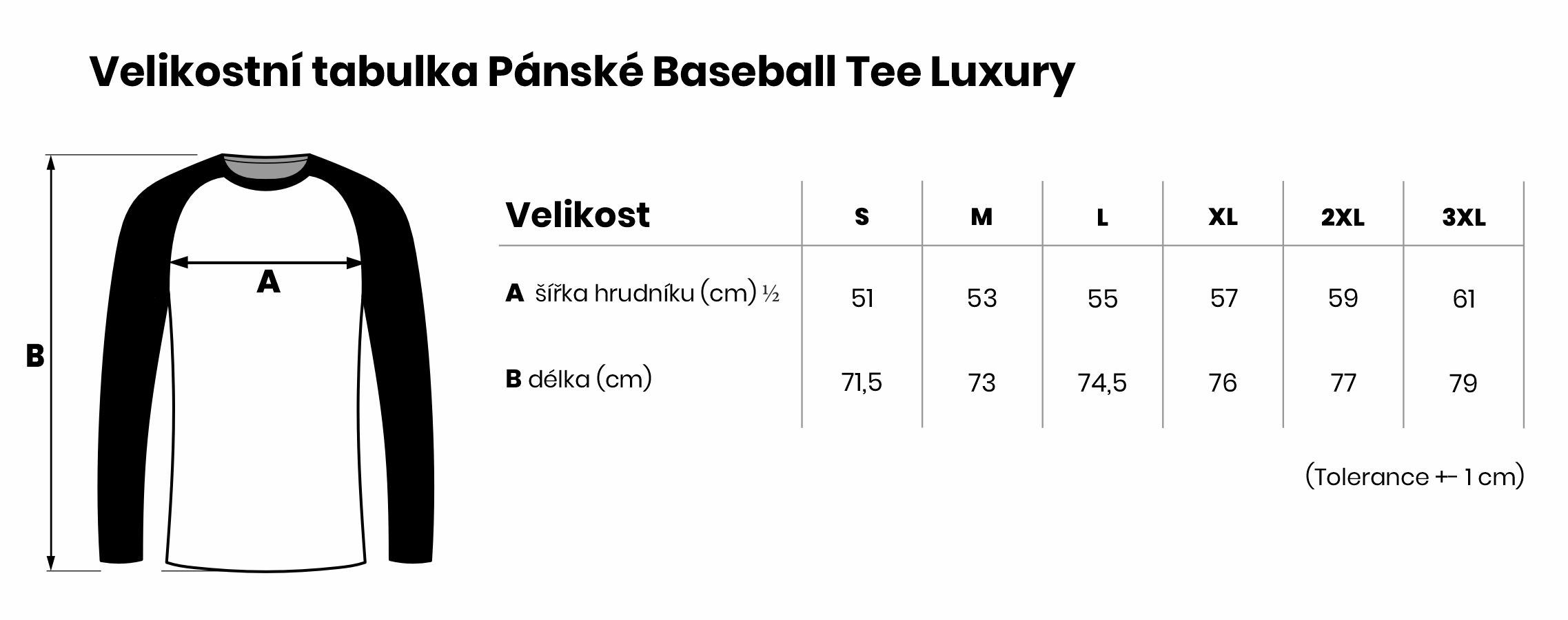 Velikostní tabulka Pánské Baseball Tee Luxury