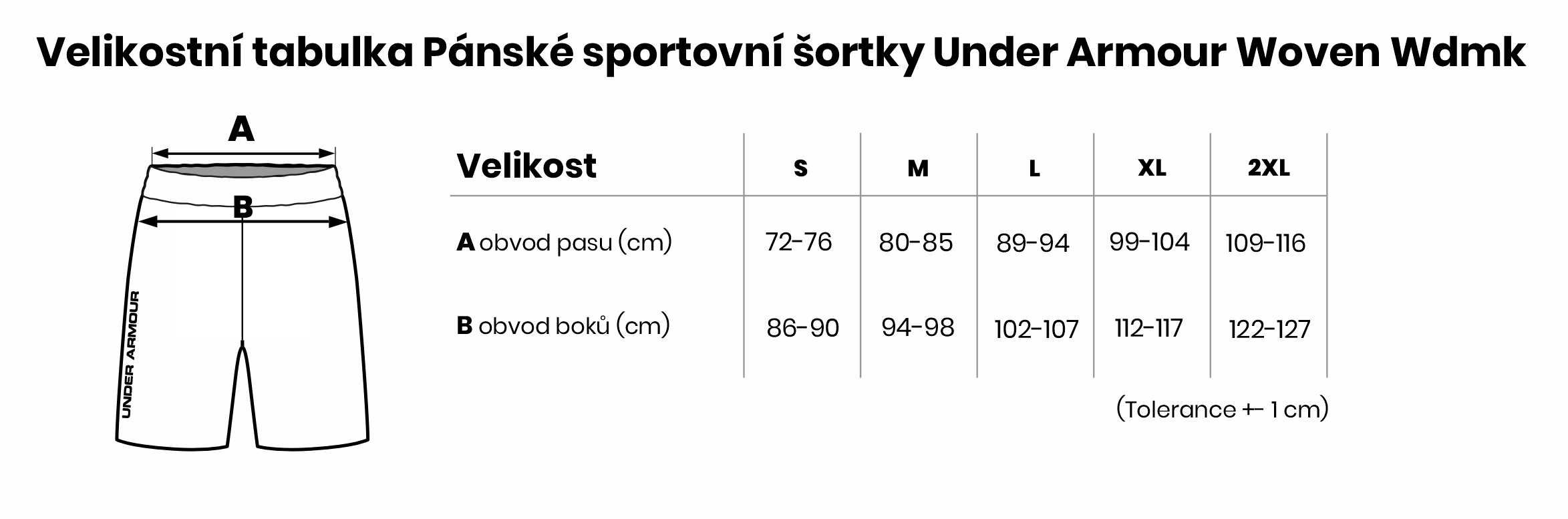 Velikostní tabulka Pánské sportovní šortky Under Armour Woven Wdmk